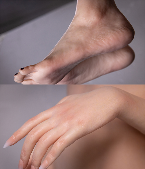 The body parts are exactly the same as the real human body, with jointed fingers that can change positions and poses