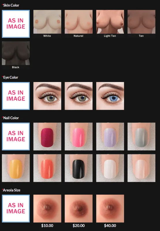 Customize your sex doll down to the finest details. Our manufacturers offer a wide range of customizable options to suit your needs and desires. Select from the picture options on each doll’s profile. HoneyLoveDoll makes this process a breeze. With just a few clicks get the exact look you want.