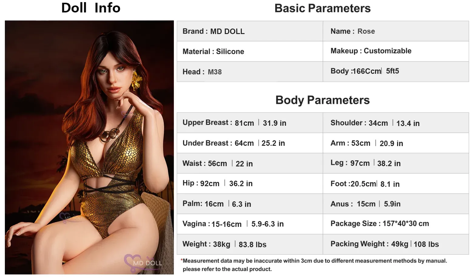 MD Doll | Rose - 5ft 5/166cm D-Cup ROS M38 Silicone Sex Doll